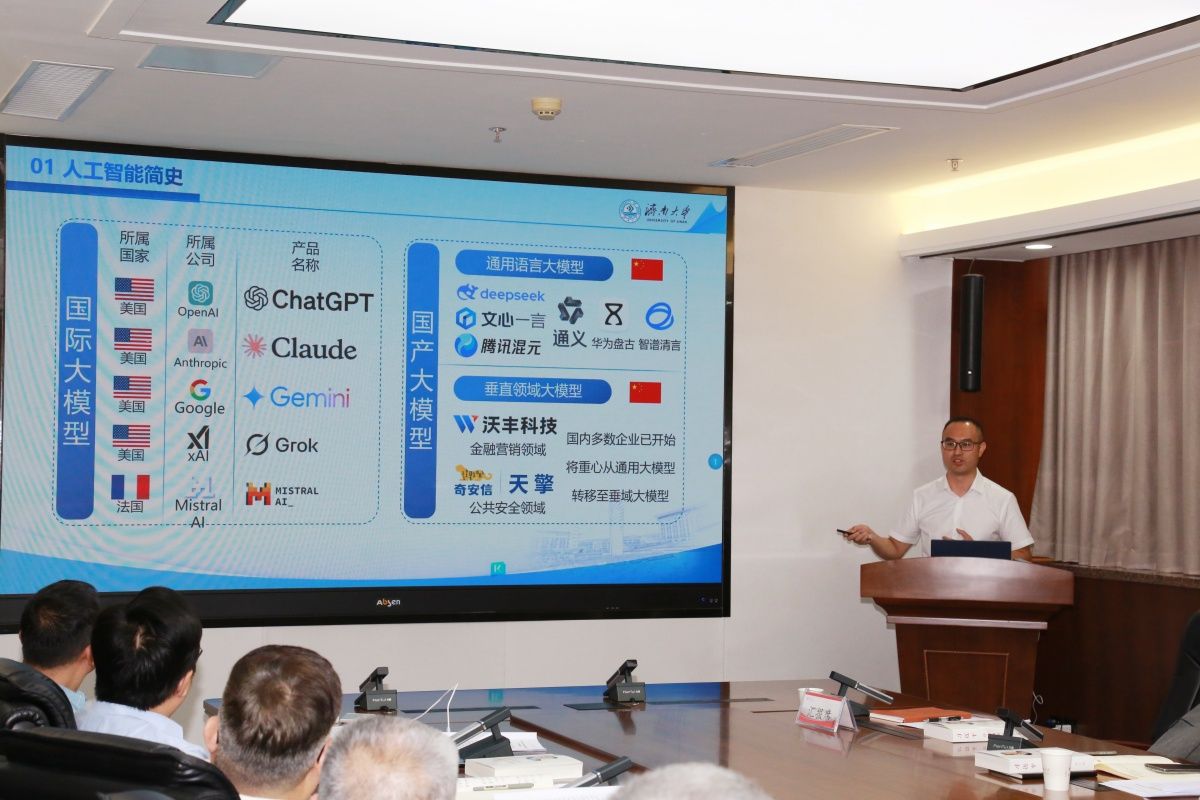 会上,教务处处长陈贞翔作题为《人工智能赋能教育的机遇与挑战》的专题辅导报告,从人工智能的历史发展与基本概念、对教育的影响、在高校的实践、未来思考等方面,详细阐述了人工智能给教育带来的机遇与挑战。党委常委、副校长黄加栋,副校长徐征和,学生工作处处长胡春毅,人力资源处处长董洁,团委书记李书翔等分别结合工作实际,围绕人工智能与教学科研、学科建设、师资队伍建设、人才培养、心理危机预警、大学生科技创新等工作的结合进行集体研讨发言。