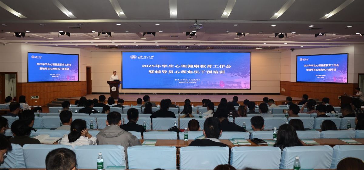 为进一步筑牢学生心理健康教育防线,提升学校心理健康教育水平,9月24日,济南大学2025年学生心理健康教育工作会暨辅导员心理危机干预培训在第一学术报告厅举行。学校党委常委、副校长李强,学生工作处(武装部)、党委保卫部 安全管理处、教务处、党委研究生工作部、团委(创新创业学院)、教育与心理科学学院等部门相关负责人,各学院党委副书记、辅导员及全体心理专职教师参加会议,学生工作处(武装部)处长胡春毅主持会议。