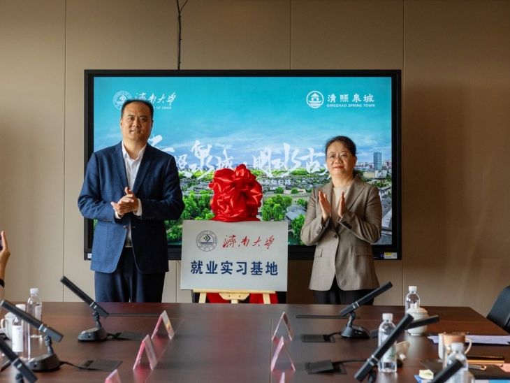 揭牌与签约仪式上,张庆国与赵琳共同为“济南大学就业实习基地”揭牌,文化和旅游学院党委副书记、副院长信苏珊与明水古城公司人力资源部总监卜一奇共同签署了《就业实习基地协议》,标志着校政企合作进入了新的阶段。