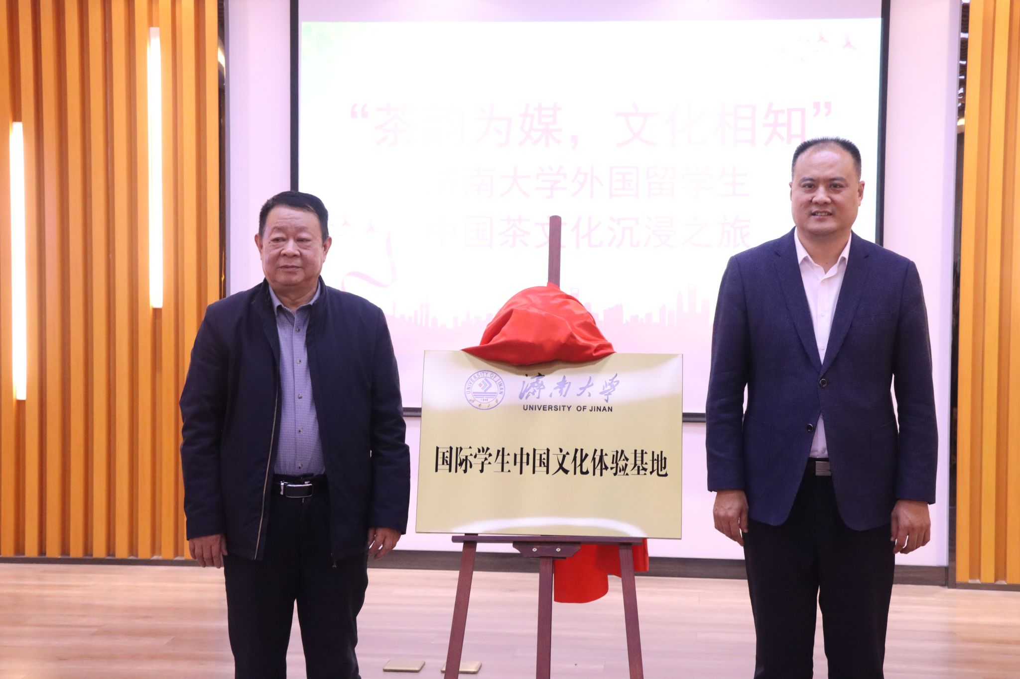 最后,济南大学党委副书记张庆国与济南广友物流配送集团有限公司党总支书记、董事长于志敏一同为“济南大学国际学生中国传统文化体验基地”授牌仪式揭牌。该基地的设立将为国际学生茶文化教育提供长效实践平台,助力中外文化交流常态化开展。