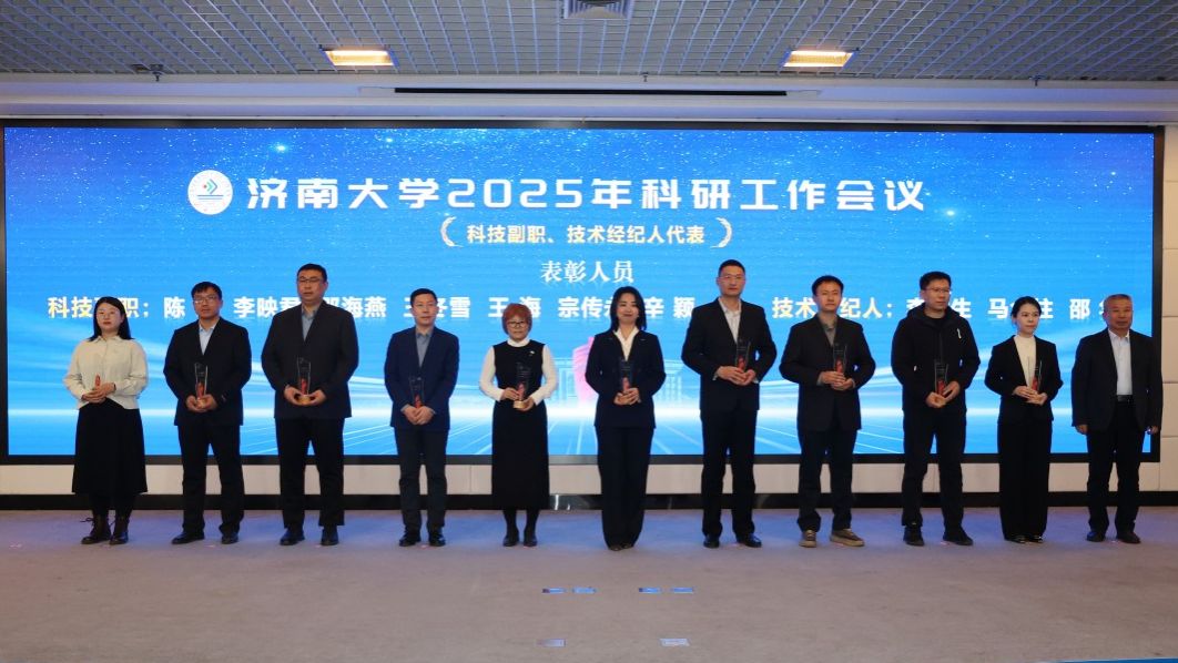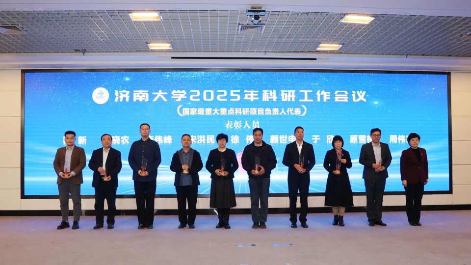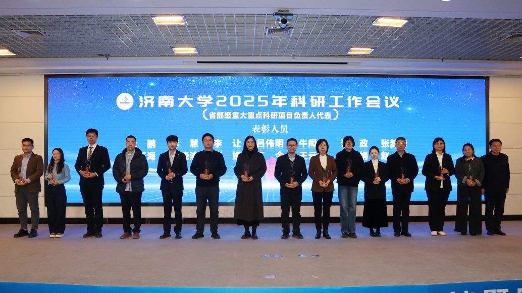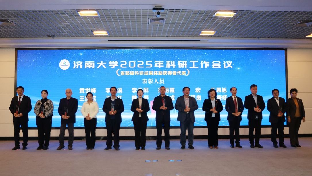 科研工作会议由党委常委、副校长黄加栋主持,刘春华作了题为《科学谋划布局 聚力突破提升——奋力开创济南大学科研事业新局面》的报告,系统总结了“十四五”以来学校科研工作在体制机制改革、平台建设、社会服务、学术交流等方面取得的新成效;深入分析研判当前面临的新机遇、新挑战与新要求,科学把握学校高质量发展对科研工作的新要求,强调要正视问题,“刀刃向内”,系统排查、深入剖析当前科研工作中的不足和短板,聚焦症结精准发力,切实将短板补齐、弱项做强;未来两年要全面实施高层次科研提升工程,着力在体制机制、平台能级、团队建设、成果质量与社会服务等方面实现新突破,奋力开创科研工作新局面,为高水平大学建设作出新的更大贡献。会上,材料科学与工程学院、政法学院作为优秀科研单位代表,周伟家、宋洪民作为优秀科研个人代表作了交流发言。学校领导为“十四五”以来承担国家级重大重点项目的负责人、获得省部级科研成果奖励的完成人等93位获奖代表颁发了奖杯。