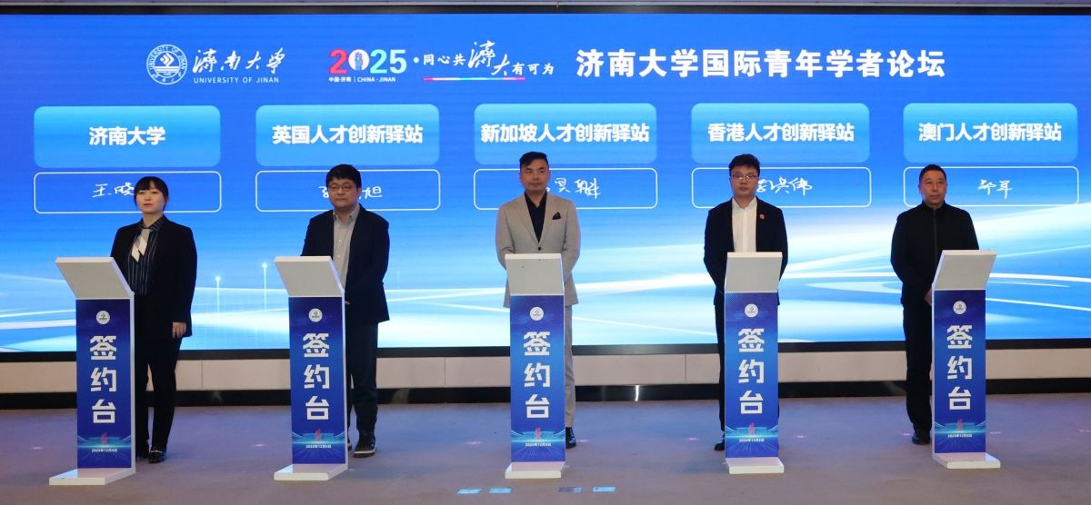 国际青年学者论坛由党委常委、副校长滕晋主持,李宁、耿庆坤分别致辞,刘春华作学校人才政策专题宣讲。李宁、耿庆坤对论坛的举办表示祝贺,二人先后系统介绍了山东省、济南市在人才引进、培养激励、服务保障等方面的支持举措,并向海内外青年英才发出诚挚邀请,欢迎大家扎根齐鲁大地、筑梦泉城济南。刘春华以“底蕴深厚、激励创新、诚意引才、通道多元”四组关键词,详细介绍了学校完整的人才培养体系、雄厚的科研实力、富有竞争力的激励机制以及多元化的发展通道与保障措施,全面展现了学校的办学实力与引才诚意,她强调学校将竭力打造最优发展平台、提供最强政策支撑、营造最佳干事生态,为青年学者营造安心工作、舒心生活、顺心科研的良好环境,实现人才成长与学校发展的同频共振、双向奔赴。学校高层次人才代表化学化工学院王冠教授结合自身成长经历,分享了在省市及学校政策支持下的科研探索与发展体会。济南磐升生物技术有限公司副总经理王军作为企业代表,介绍了公司与济南大学在人才共引共育、博士后联合培养、产教融合、科研合作等方面的深入实践与丰硕成果。论坛现场还举行了“济南大学海(境)外人才创新驿站”签约仪式。