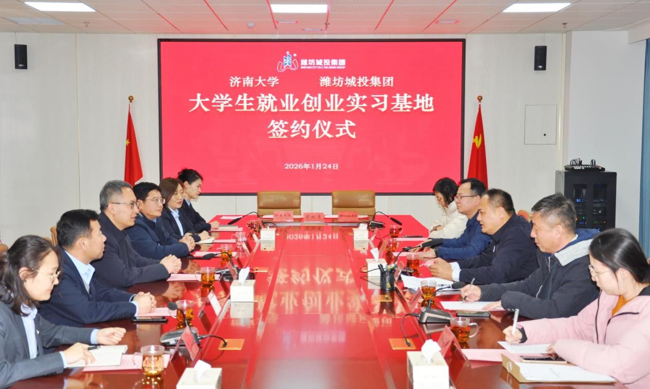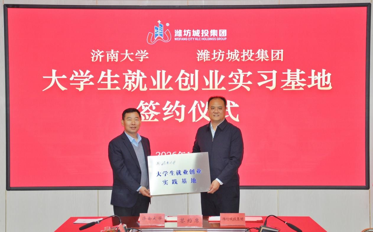 随后,张庆国与王金滨共同为“济南大学就业实习基地”揭牌,商学院党委书记彭亚宁作为代表与潍坊城投集团正式签署《大学生就业创业实践基地协议书》,标志着合作迈入实质性推进阶段。