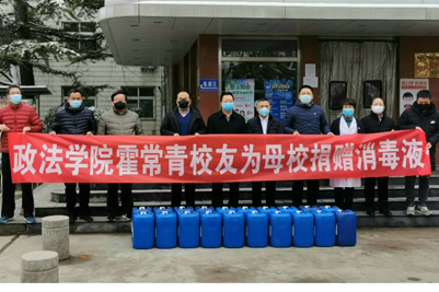 2月11日、16日,我校校友李浩、董涛、霍常青为母校捐赠防疫物资活动分别在我校举行。刘宗明副校长,发展规划与学科建设处、合作发展处、校医院、政法学院、生物科学与技术学院相关负责同志出席捐赠活动。