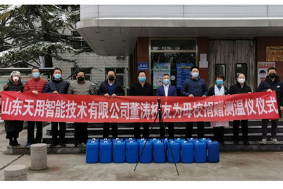 11日,体育学院李浩校友在严密繁琐检查程序后,不辞辛苦驱车专程从枣庄长途送来一吨84消毒液原液,为学校公共场所消杀防控提供了及时有力的支持。16日,为帮助母校提高体温检测安全性和检测效率,化学化工院董涛校友购买后第一时间赶到母校,捐赠目前最为先进的遥感体温监测仪;同日,政法学院霍常青校友也及时伸出援助之手,专程返回母校捐赠消毒液一吨。