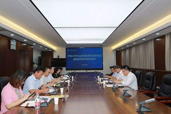王霞、薄存旭分别代表济南大学、山东省教育科学研究院签署了战略合作协议。为推动战略合作的务实有效开展,与会人员在签约仪式后召开座谈会,重点就基础教育中心发展、高等教育评估评价、师范教育教学资源共建共享等方面进行了深入研讨。