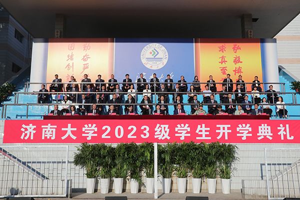 本报讯 丹桂香满园,秋日胜春朝。9月22日上午,济南大学在主校区运动场隆重举行2023级学生开学典礼,为来自全国各地的9900余名2023级学生带来一场别开生面的欢迎仪式。