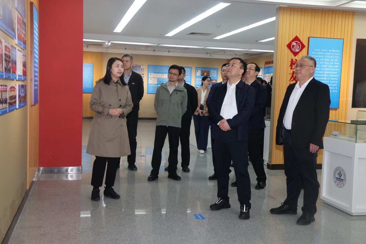 黄加栋陪同张东光一行参观学校办学成就展,其间介绍了学校办学历史、学科布局及科技成果转化工作亮点,围绕校地科技合作的核心方向、学科优势与产业需求的契合点、成果转化的实践路径等内容进行充分交流。