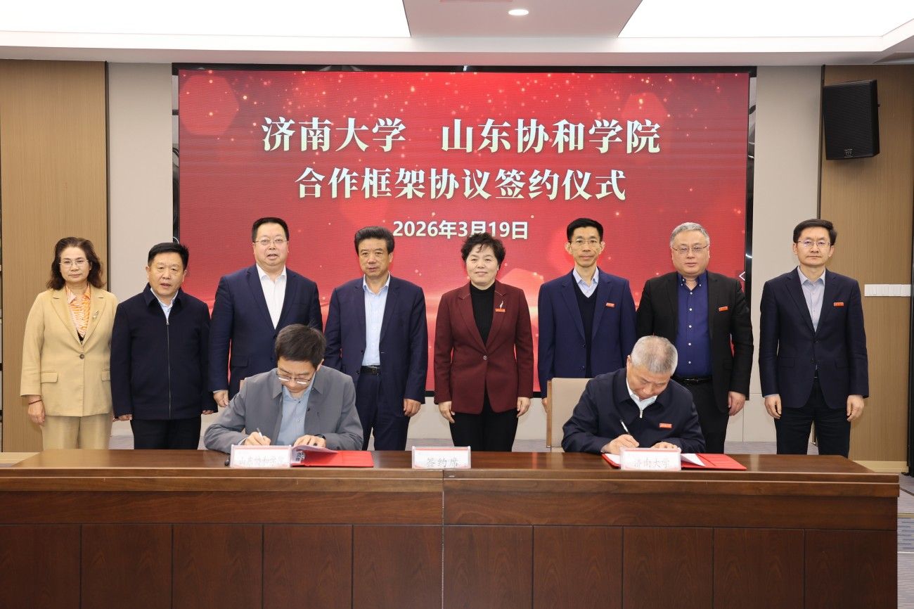 会上,徐会吉、徐征和代表双方签署济南大学、山东协和学院全面合作框架协议。双方就合作内容进行了深入座谈交流。