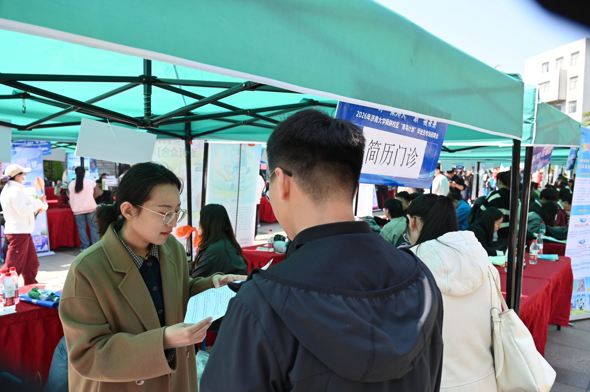 本次双选会共吸引了中国邮政集团有限公司、中信证券(山东)有限责任公司、鲁南制药集团股份有限公司、山东新东方烹饪职业培训学院有限公司、巨野外国语学校等120余家国内优质企业参与,涵盖金融、旅游、酒店、物流、信息技术等多个行业领域,提供就业岗位800余个,充分满足三个学院毕业生的多元化求职需求。活动现场不仅设置了企业招聘专区,还特别开设了“朋辈面对面”职业指导、“简历门诊”优化服务、大学生应征入伍政策咨询、西部计划项目介绍等特色展位,全力为2026届毕业生提供高质量、多样化、精准性的就业服务。