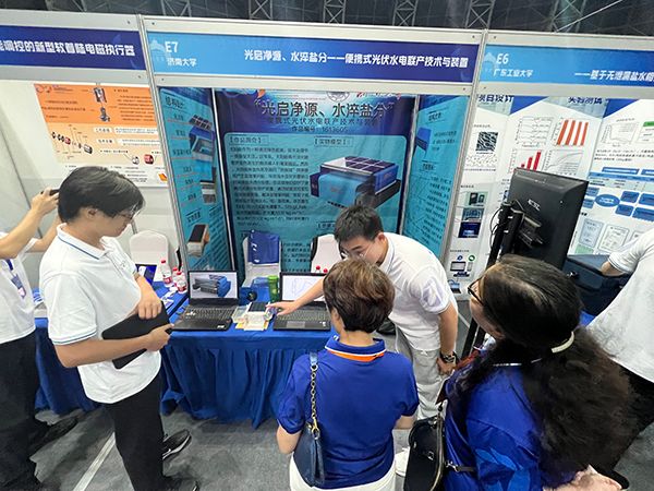 刘鹏团队的获奖项目《光启净源,水淬盐分——便携式光伏水电联产技术与装置》以便携式光伏水电联产装置为核心,旨在实现高效的太阳能水、电、盐联产,该装置主要由太阳能电池板和被动式的多级蒸馏装置构成。创新之处在于通过调节多级蒸馏装置中吸水材料的高度搭建毛细水桥,利用虹吸效应自动冲刷结晶盐,解决蒸馏器内部的盐堆积。